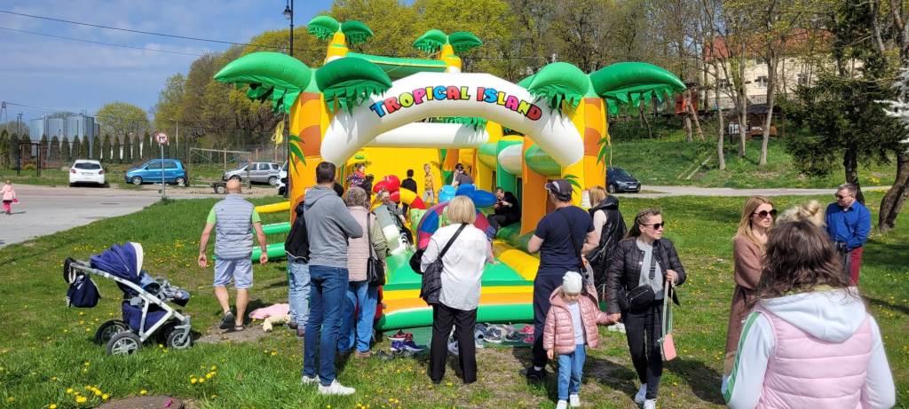 Pierwsza niedziela maja w Rynie wypełniona była współzawodnictwem i atrakcjami dla całych rodzin. Dmuchańce, planszówki, wspólne czytanie bajek i plastyczne wariacje z Biblioteką Publiczną w Rynie, a także zagroda z alpakami sprawiły, że nabrzeże Jeziora Ryńskiego wypełnione było po brzegi ludźmi, którzy o godz. 14:00 przenieśli się do amfiteatru na koncert Zespołu ojTam.