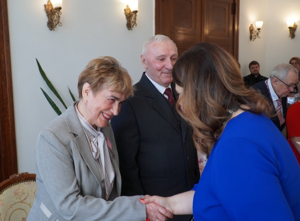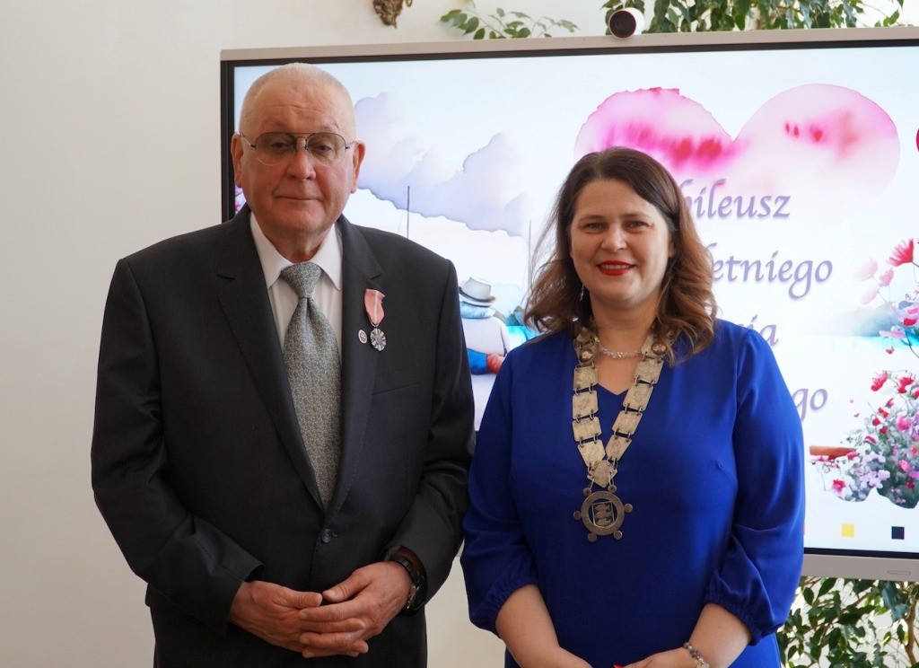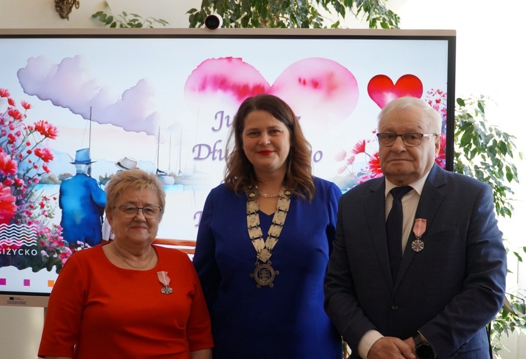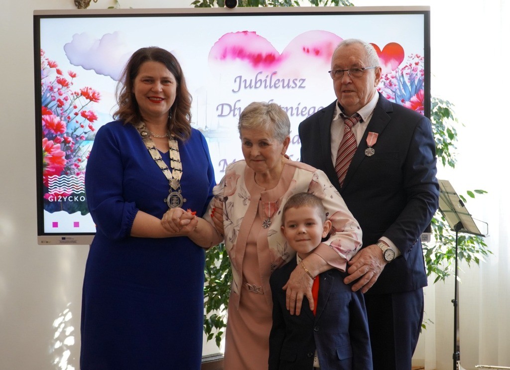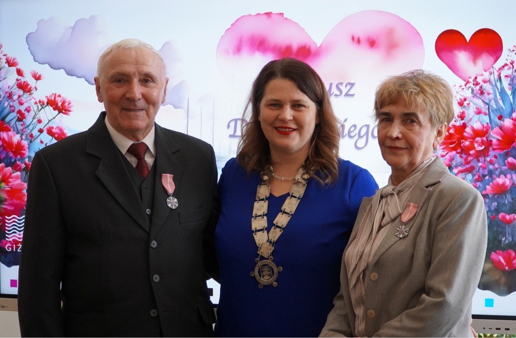 Burmistrz Giżycka, Ewa Ostrowska, w towarzystwie Kierownik Urzędu Stanu Cywilnego, Iwony Wojciulewicz, wręczyła jubilatom Medale za Długoletnie Pożycie Małżeńskie nadane przez Prezydenta RP Andrzeja Dudę.
