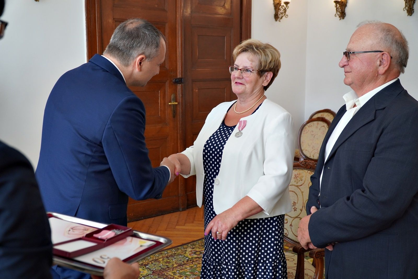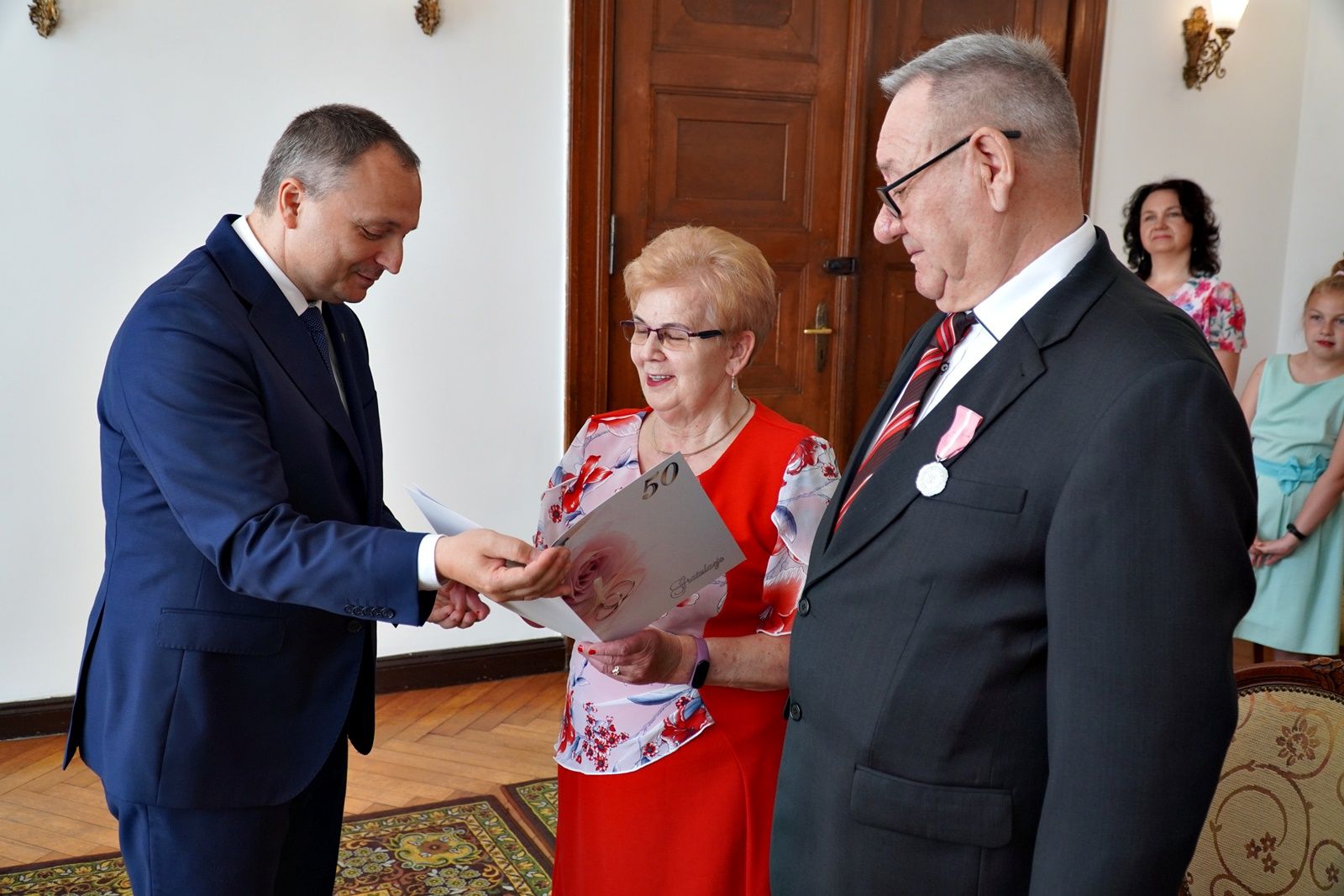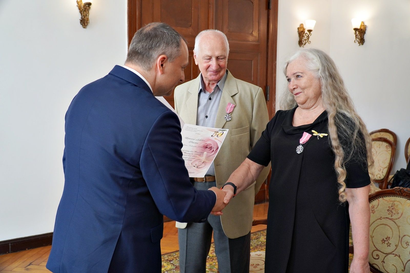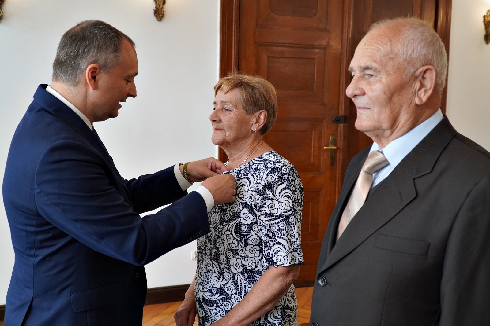 W imieniu Prezydenta Andrzeja Dudy medale przekazywał burmistrz Wojciech Karol Iwaszkiewicz w towarzystwie kierownika Urzędu Stanu Cywilnego Iwony Wojciulewicz.