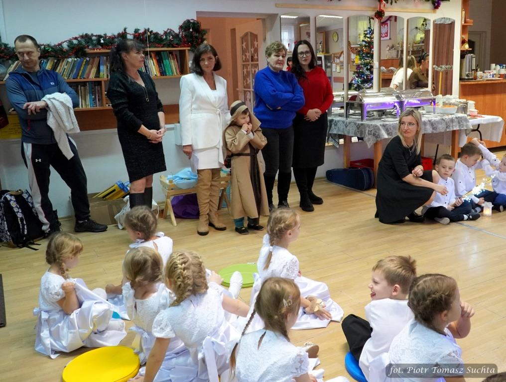 W tym uroczystym dniu podsumowującym projekt dyrektor CPUIS Pani Ewa Ostrowska podziękowała wszystkim za zaangażowanie, wsparcie i wspólny udział w tym przedsięwzięciu oraz wręczyła małe upominki przedstawicielkom fundacji ARwena. Następnie dzieci z Przedszkola nr 4 w Giżycku zaprezentowały Jasełka. Po tym wzruszającym i pięknym występnie zaproszeni goście, dzieci oraz uczestnicy projektu usiedli do wigilijnego stołu, życząc sobie zdrowia spokoju i rodzinnych świąt.
