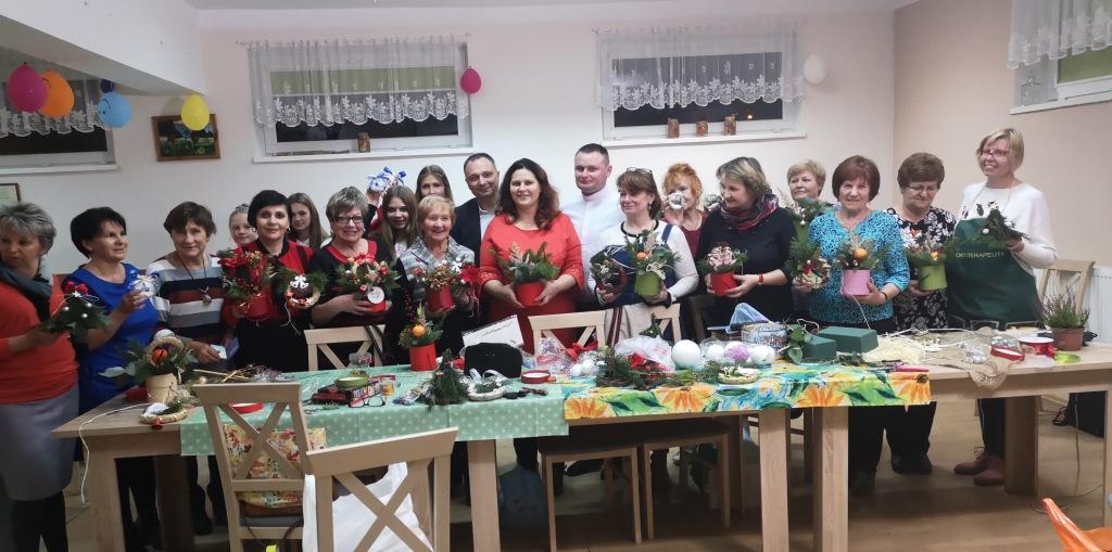 Ozdoby własnoręcznie tworzyli także Wojciech Karol Iwaszkiewicz – Burmistrz Miasta, Ewa Ostrowska – Dyrektor CPUIS , a gościem specjalnym był ksiądz Mariusz Pawlina. Zebrani pod kierunkiem hortiterapeutki Zofii Wojciechowskiej zrobili piękne żywe stroiki i ozdoby choinkowe, chętni mogli też zrobić sobie bombki 3 d ze zdjęciami – tu swoją wiedzą w tym zakresie dzieliła się Monika Czerep.
