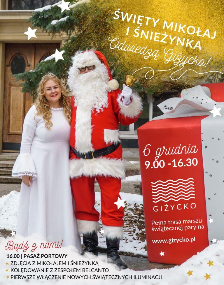 Mikołaj i Śnieżynka zawitają do Giżycka już 6 grudnia, by tradycyjnie świętować razem z mieszkańcami! Podczas wizyty będą pozdrawiać giżycczan, robić wspólne zdjęcia i odbierać listy z życzeniami do Świętego pod choinkę.