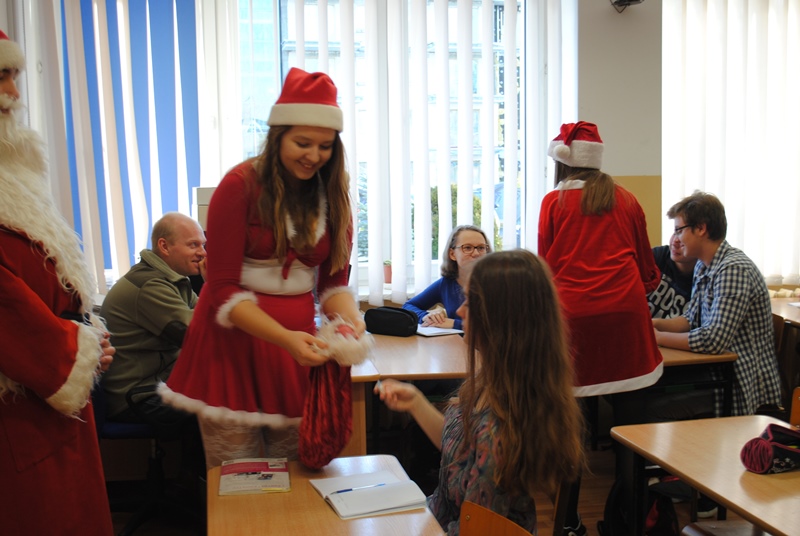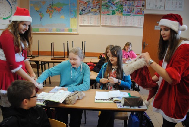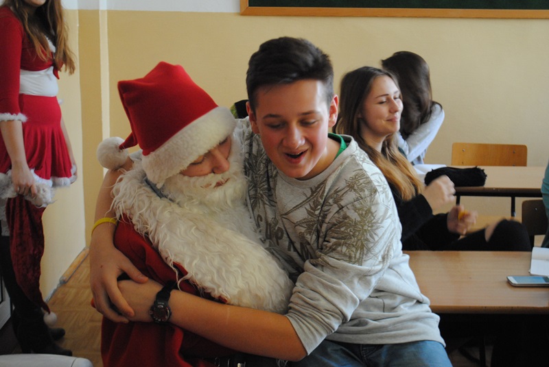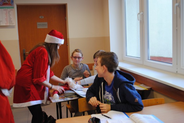 7 grudnia do Publicznego Gimnazjum im. Szarych Szeregów w Wilkasach zawitał Święty Mikołaj z towarzyszącymi mu śnieżynkami. Wszystkich grzecznych gimnazjalistów oraz pracowników szkoły obdarował słodkimi upominkami. Bardzo się śpieszył, ale udało się go sfotografować i uwiecznić jego pobyt w szkole na kilku zdjęciach.
