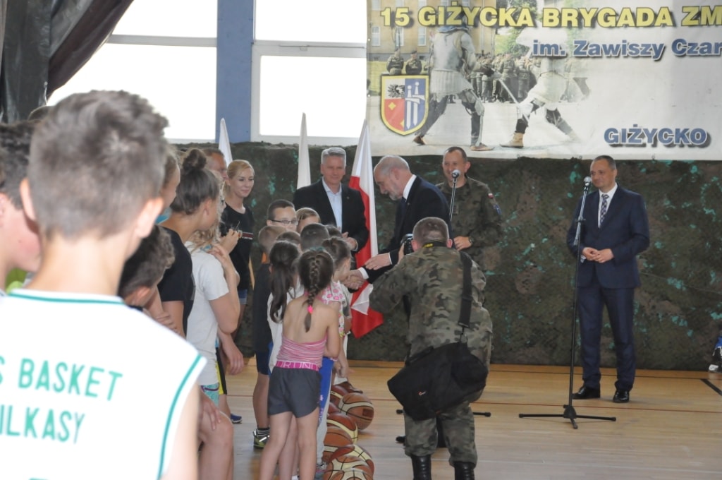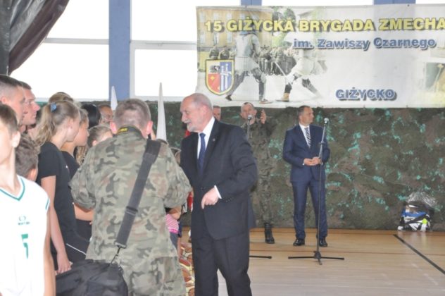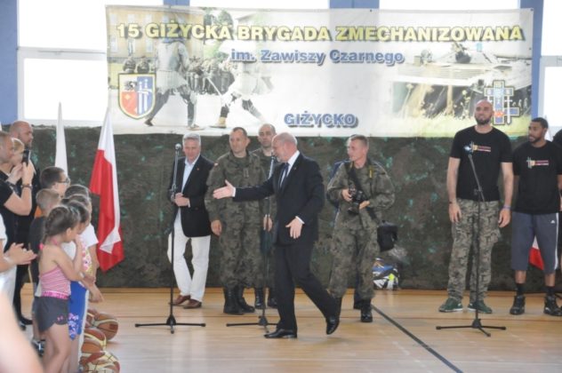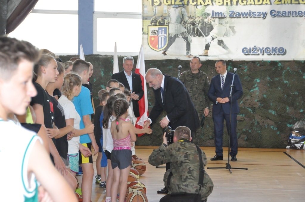 W czwartek, 23 czerwca Minister Obrony Narodowej Antoni Macierewicz odwiedził żołnierzy z 15 Giżyckiej Brygady Zmechanizowanej. Minister spotkał się również z młodzieżą szkolną i przyglądał się treningowi koszykówki, który prowadził znany sportowiec Marcin Gortat. Po treningu odbyła się konferencja prasowa na temat „Roli 15 Giżyckiej Brygady Zmechanizowanej w kontekście rozbudowy ściany wschodniej”. Minister podkreślił, że 15 GBZ jest jednostką najdalej wysuniętą na wschód i broni jednego z najistotniejszych odcinków przesmyku suwalskiego.