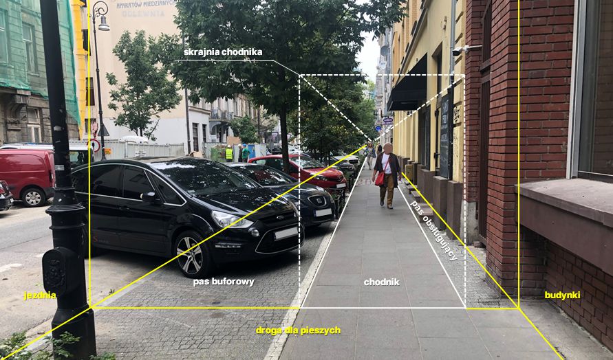 - pas buforowy, który przylega do chodnika od strony jezdni, torowiska tramwajowego lub drogi dla rowerów, może być przeznaczony np. do postoju lub zatrzymania pojazdów;