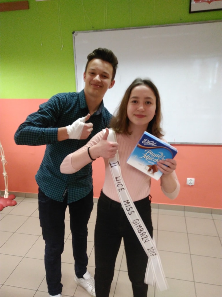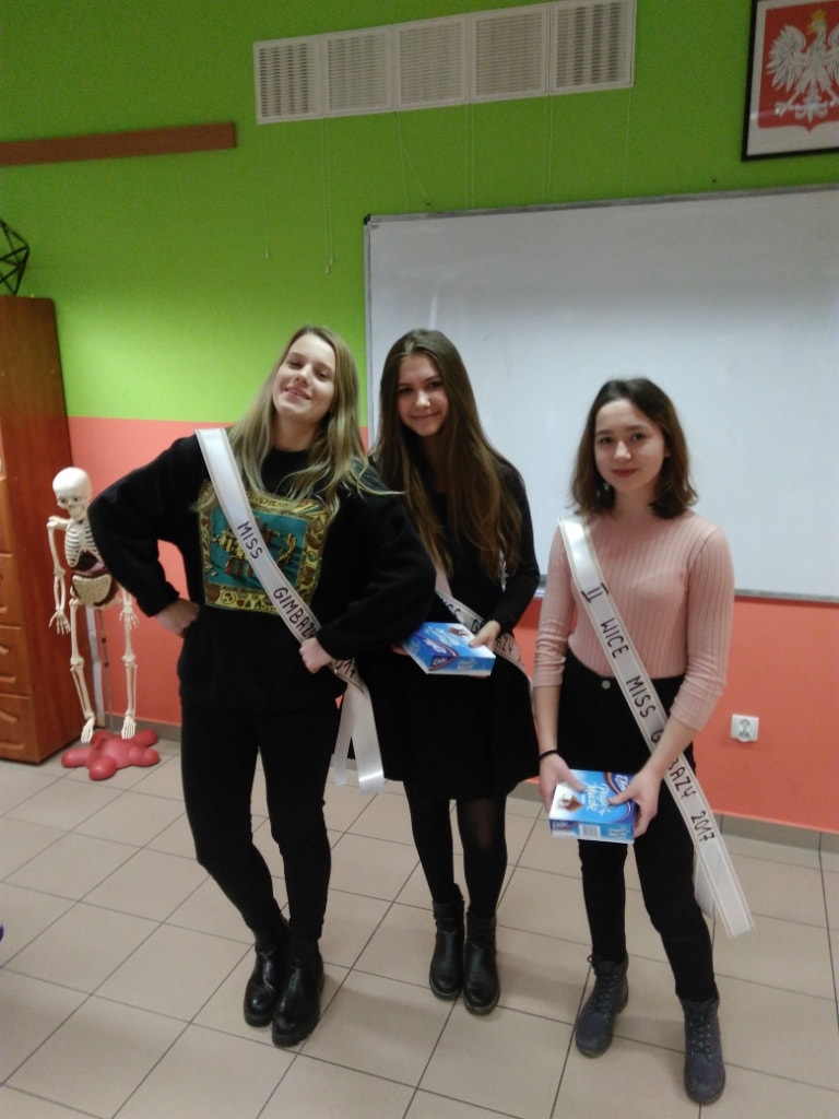 Wiele osób zastanawia się nad tym jaka właśnie powinna być Miss? Czy powinna być brunetką czy blondynką, mieć 180 cm czy wystarczy 170 cm, czy powinna mieć wymiary idealne czyli 90-60-90 czy może powinna mieć typowe kobiece kształty? Czy tylko wystarczy aby była piękna wizualnie, a może powinna posiadać równie piękne wnętrze? ILE OSÓB NA ŚWIECIE TYLE GUSTÓW I GUŚCIKÓW , a więc każdemu podoba się coś innego… Szkolne wybory to nic trudnego, zdjęcia dziewcząt wraz z krótkimi notatkami wisiały na korytarzu szkolnym, dzięki temu wszyscy mogli zapoznać się z kandydatkami. Głosowanie nastąpiło 8 marca, wszyscy oddali głosy łącznie z nauczycielami i obsługą szkoły. Z uzbieranych głosów II Wice Miss Gimbazy 2017 została Zuzanna Ruszkul z 2c, I Wice Miss zdobyła Alicja Grodzicka z 3a, natomiast najwięcej głosów otrzymała Ada Bucholska z 2b.