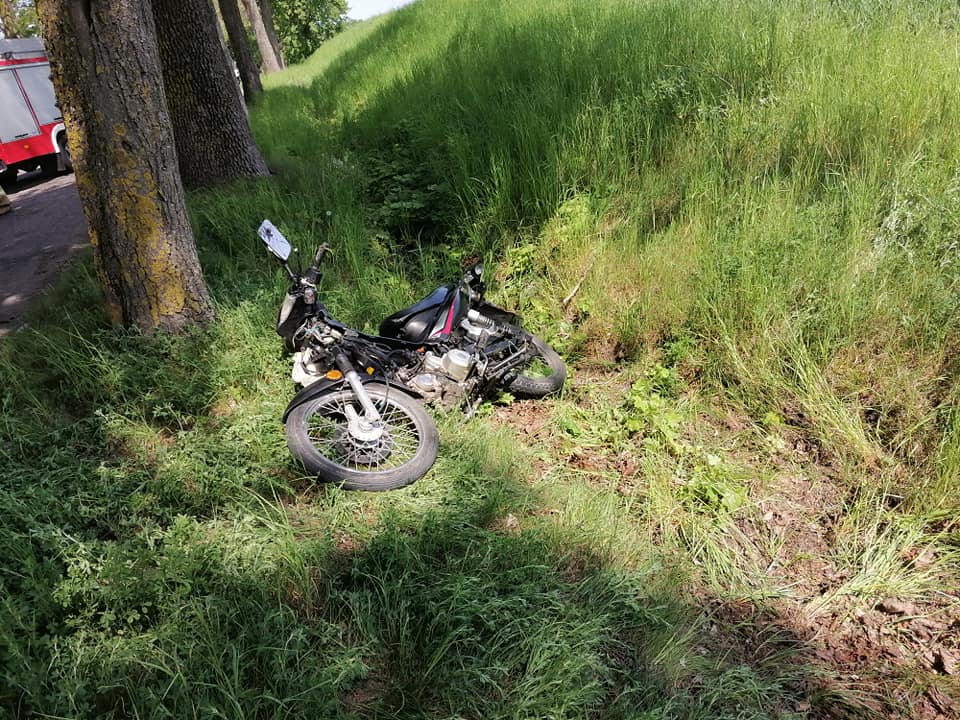 W sobotę (20 maja) 30-letni kierowca motoroweru zjechał z drogi i uderzył w drzewo. Mężczyzna z obrażeniami ciała został przetransportowany do szpitala.