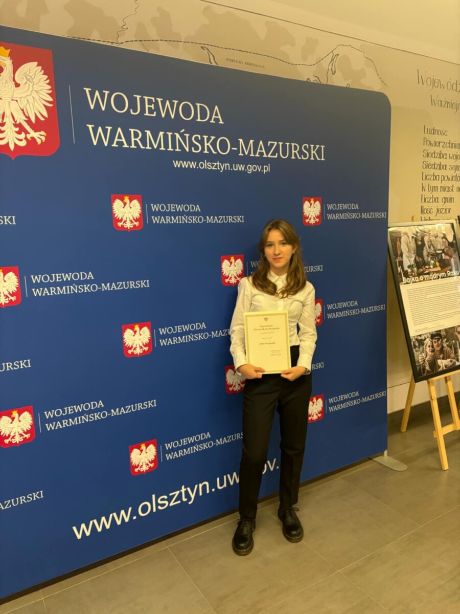 - Julia Grajewska – I Liceum Ogólnokształcące im. Wojciecha Kętrzyńskiego w Giżycku (klasa II)