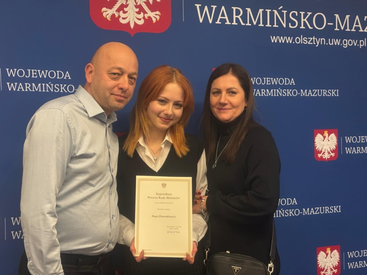 26 listopada w Warmińsko-Mazurskim Urzędzie Wojewódzkim w Olsztynie odbyła się uroczystość wręczenia dyplomów uczniom, którzy uzyskali stypendium Prezesa Rady Ministrów za rok szkolny 2024/2025.