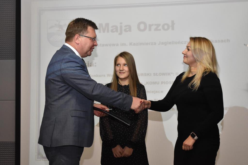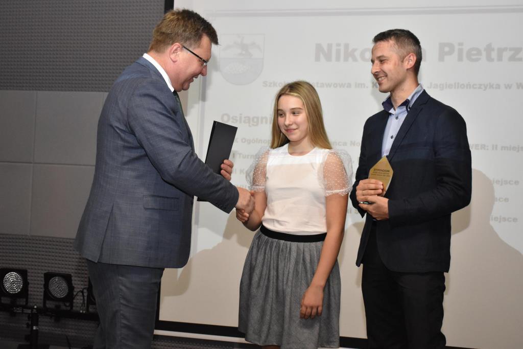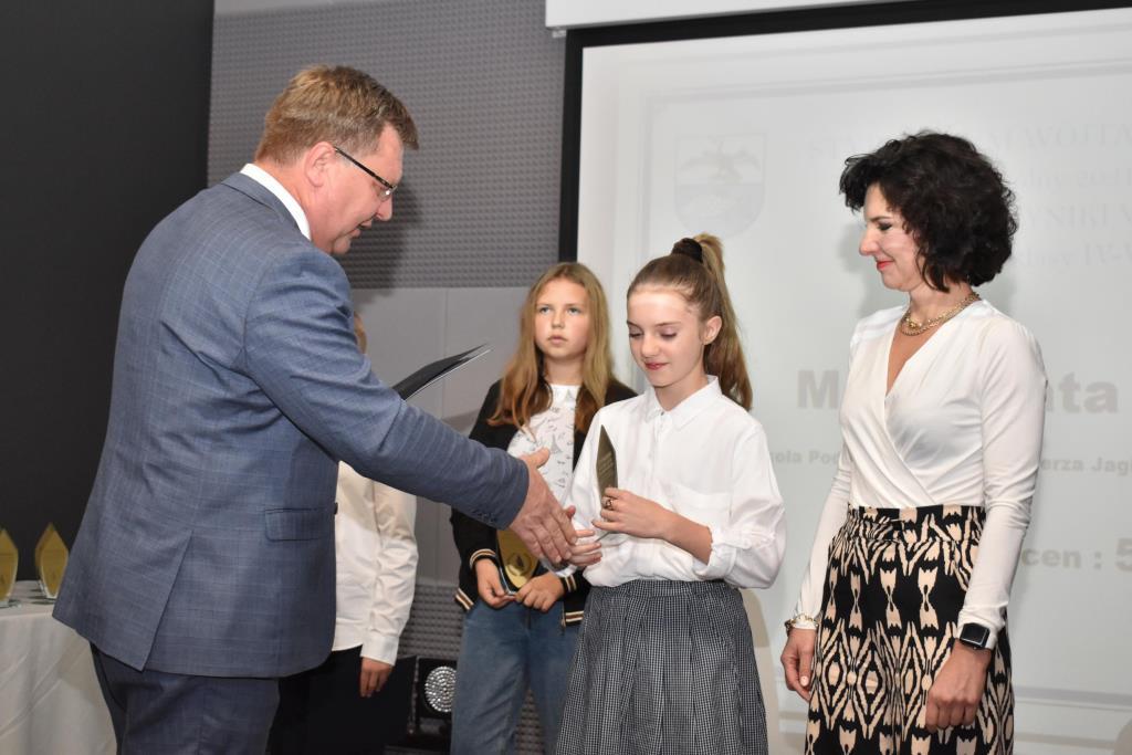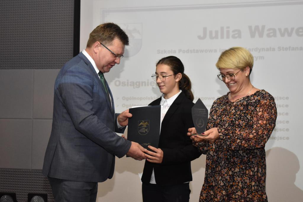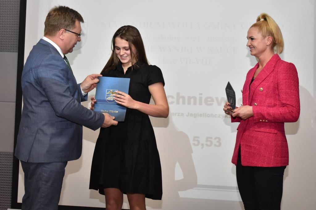 – Gratuluję wszystkim młodym ludziom, którzy stanęli dzisiaj na scenie i otrzymali te piękne wyróżnienia. Zasłużyliście sobie na to swoją ciężką i systematyczną pracą. Wytrwałością w dążeniu do celu – podkreślił wójt Marek Jasudowicz. – Wasze sukcesy to także uhonorowanie pracy nauczycieli, rodziców i opiekunów włożonej w wychowanie i wspieranie w rozwijaniu waszych zainteresowań oraz umiejętności.