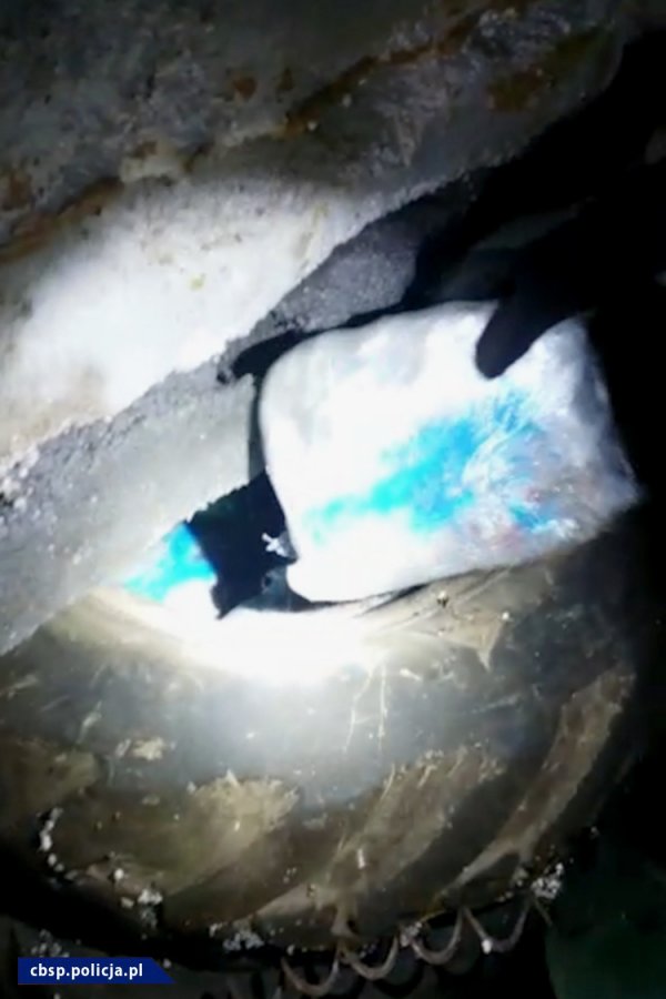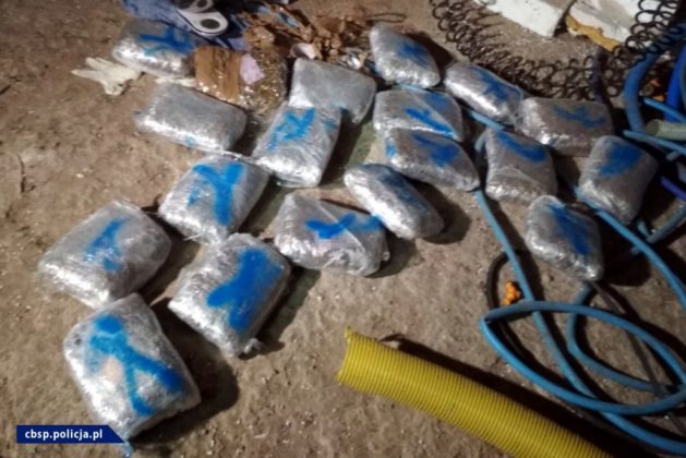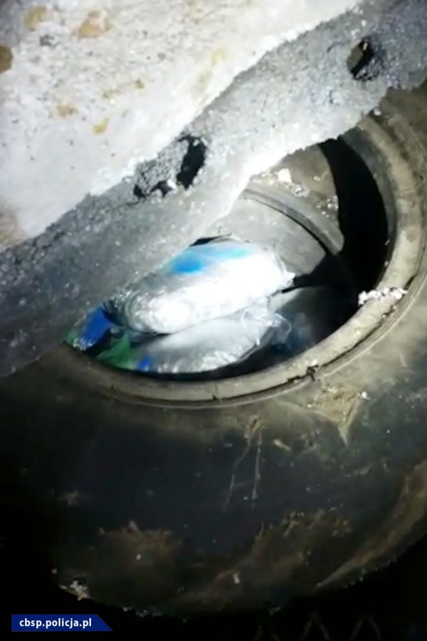 Z ustaleń policjantów olsztyńskiego zarządu CBŚP wynikało, że podejrzany może ukrywać narkotyki także w miejscu pracy. Tam policjanci znaleźli ukryte w oponach kolejne środki odurzające. 20 kg marihuany podzielone było i zapakowane w hermetyczne foliowe worki.