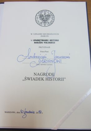 10 grudnia 2019 r. w Białostockim Instytucie Pamięci Narodowej po raz 11-ty wręczono medale zasłużonym dla upamiętniania historii narodu polskiego – „Świadek Historii”. Spośród osiemnastu zgłoszonych do nagrody, komisja konkursowa pod przewodnictwem prezesa IPN dr Jarosława Szarka wyłoniła sześciu zwycięzców.