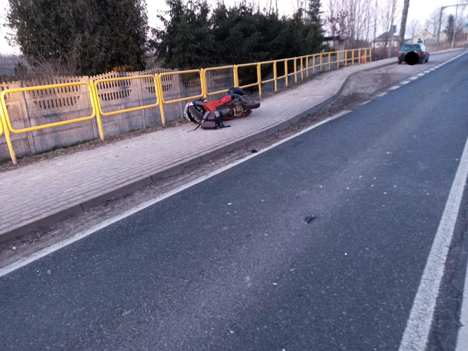 W wyniku zdarzenia kierowca motoroweru został przetransportowany do szpitala. Kierowcy byli trzeźwi.