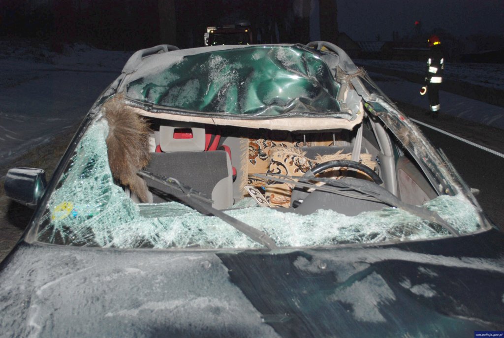 Siła uderzenia była tak duża, że zwierzę zginęło na miejscu. Auto zostało poważnie uszkodzone, a 53-letni mężczyzna, który autem jechał sam, z obrażeniami twarzy został przewieziony do szpitala. Policjanci wyjaśniają wszystkie okoliczności zdarzenia.