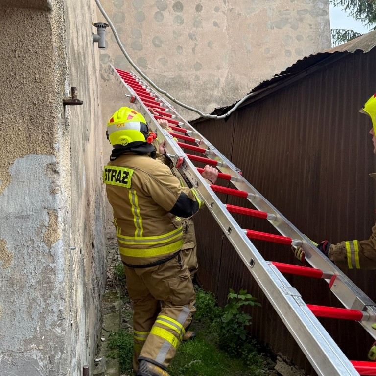 Niecodzienna interwencja OSP Wydminy. Strażacy uratowali uwięzionego ptaka (1)