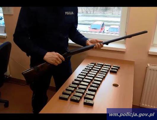 Kryminalni z Komendy Powiatowej Policji w Węgorzewie uzyskali informację, że w jednym z mieszkań na terenie Węgorzewa może znajdować się nielegalna broń palna. Funkcjonariusze w celu potwierdzenia pozyskanych informacji pojechali do miejsca zamieszkania 26-latka. Podczas przeszukania mieszkania i pomieszczeń gospodarczych, mundurowi ujawnili broń. Mężczyzna miał na strychu schowaną dubeltówkę typu myśliwskiego i ponad 2200 sztuk amunicji. 26-latek nie posiadał zezwoleń wymaganych prawem do posiadania tych rzeczy. Mieszkaniec Węgorzewa tłumaczył policjantom, że broń znalazł w wannie zakopanej przy domu, a amunicje na wysypisku śmieci. Teraz zabezpieczone przez policję przedmioty trafią do laboratorium, gdzie badanie balistyczne pozwolą ocenić stan techniczny broni i amunicji.