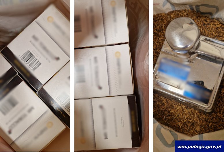 Do zdarzenia doszło w czwartek, 11 grudnia. Podczas prowadzonych czynności funkcjonariusze znaleźli ponad 5 kilogramów krajanki tytoniowej. Ponadto zabezpieczono dziewięć foliowych woreczków z zapięciem strunowym, wypełnionych papierosami bez wymaganych znaków akcyzy – po 20 sztuk w każdym opakowaniu. Policjanci ujawnili także siedem opakowań gilz papierosowych, z których każde zawierało po 550 sztuk.