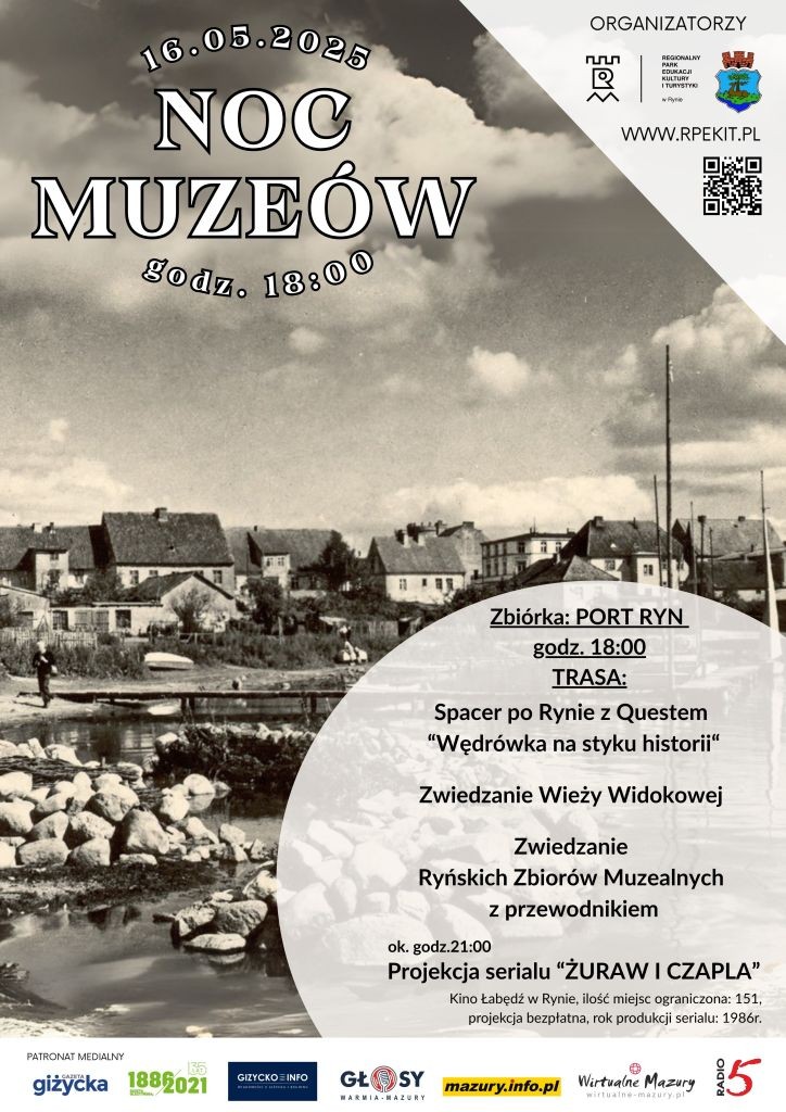 Noc Muzeów 2025 w Rynie – Wędrówka na styku historii –16 maja 2025 r. (piątek), start: godz. 18:00. Miejsce zbiórki: PORT RYN.