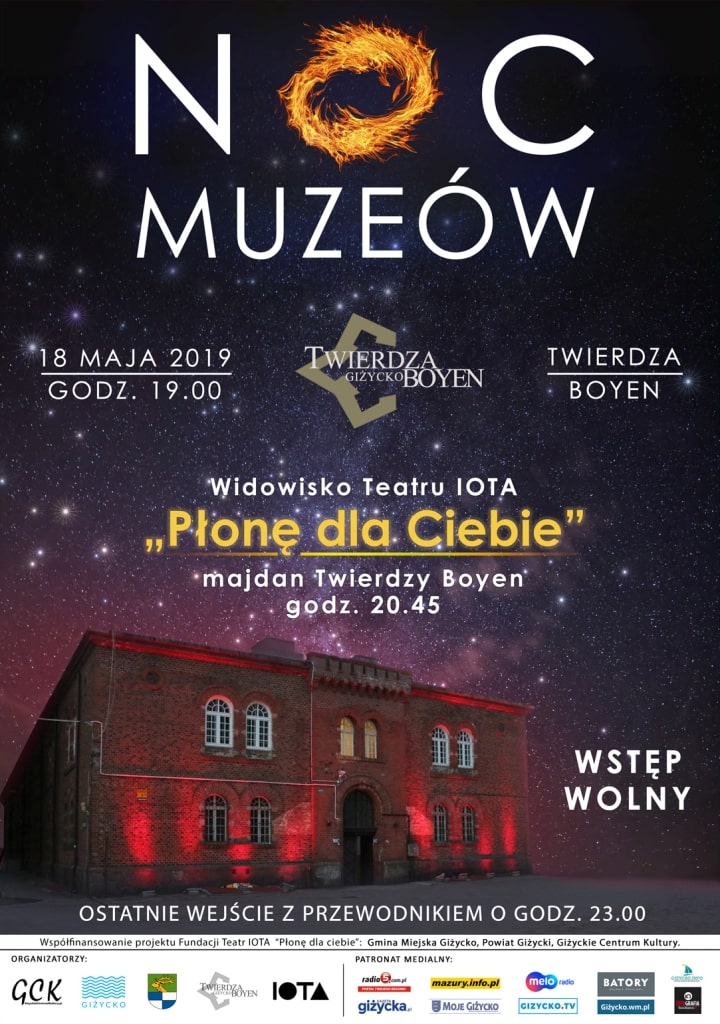 Współfinansowanie projektu Fundacji Teatr IOTA „Płonę dla ciebie”: Gmina Miejska Giżycko, Powiat Giżycki, Giżyckie Centrum Kultury.