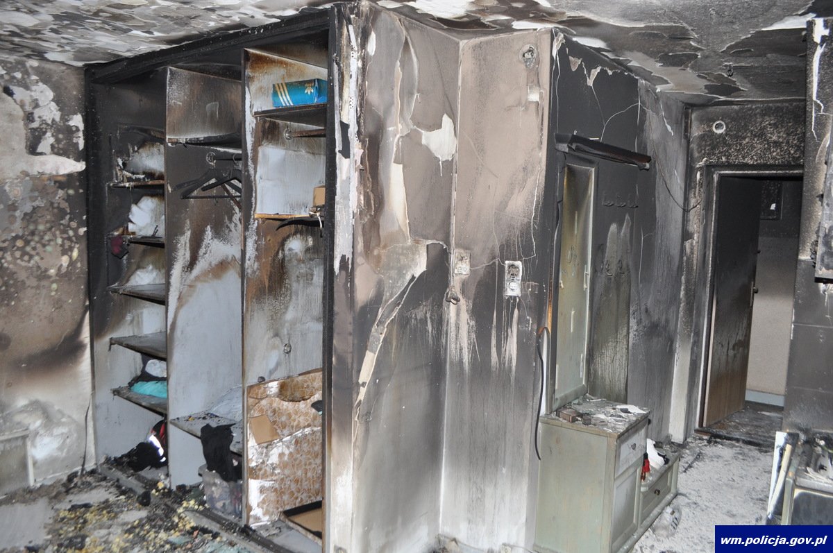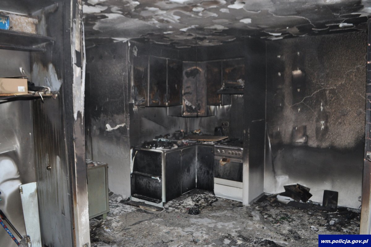 Jako pierwsi na miejscu pojawili się policjanci patrolujący miasto. Funkcjonariusze zauważyli płomienie wydobywające się z okna oraz gęsty dym wypełniający klatkę schodową.