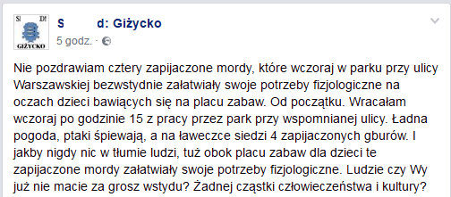 „A co ludzie maja zrobić z problemem pijackich mord jak policja ich pędza a te morusy dalej tam przesiadują ????”