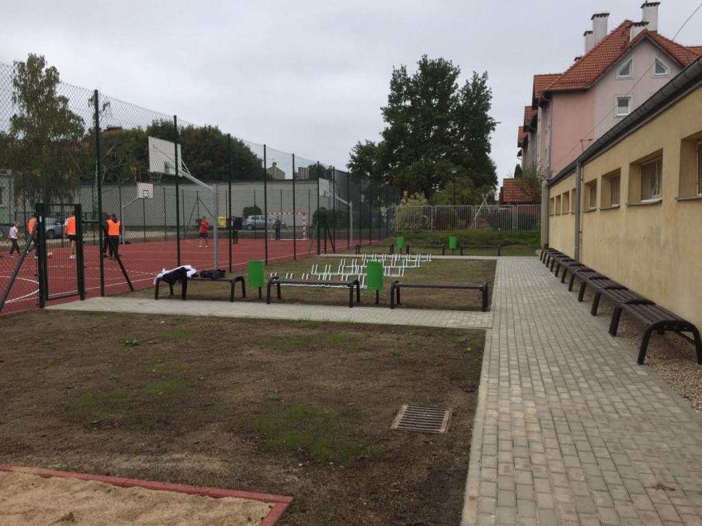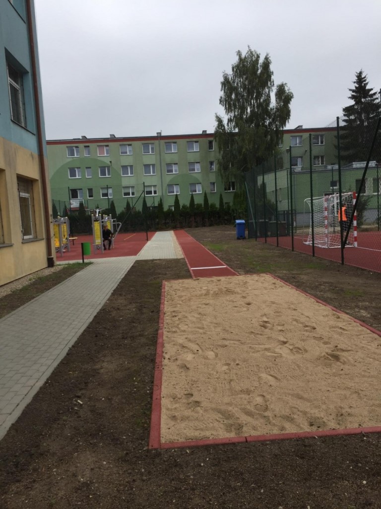 W ubiegłym tygodniu odebrany został od wykonawcy kompleks boisk z siłownią i skocznią w dał. W ramach projektu postawione zostały także ławeczki, stojaki na rowery, zagospodarowane tereny zielone (posiano trawę), ciągi komunikacyjne z wjazdem na teren szkoły i boiska dla osób z niepełnosprawnością ruchową poruszających się na wózkach.