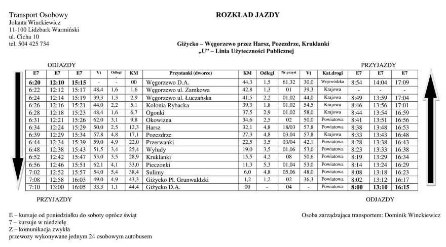Rozkład linii autobusowej na trasie Giżycko-Kruklanki-Węgorzewo