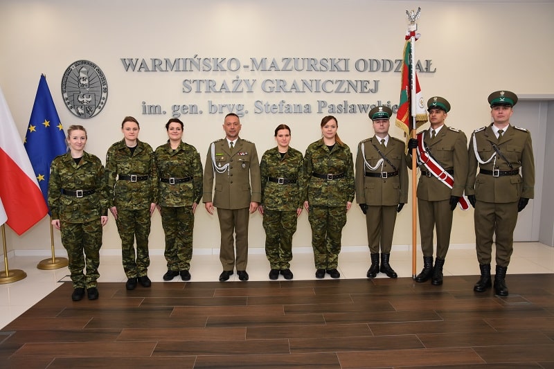 W asyście pocztu sztandarowego Warmińsko-Mazurskiego Oddziału Straży Granicznej 5 nowych funkcjonariuszy wypowiedziało słowa roty. Ślubowanie przyjął Komendant W-MOSG płk SG Robert INGLOT.