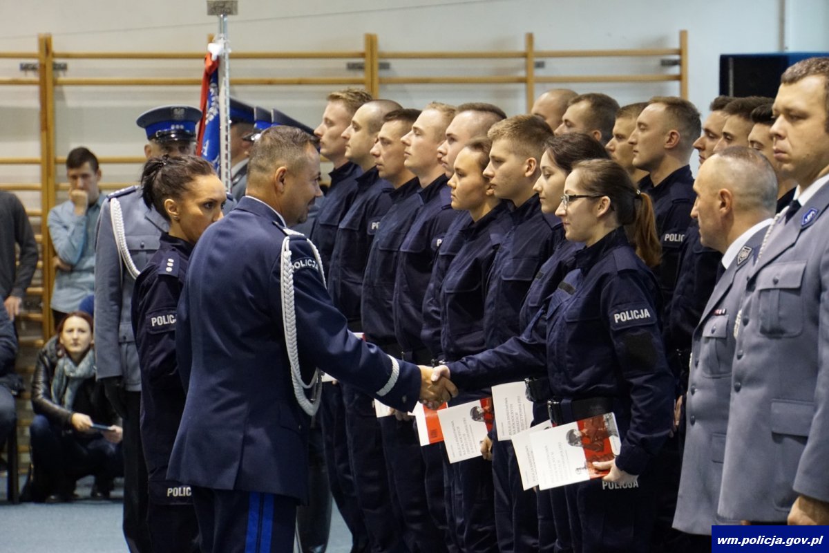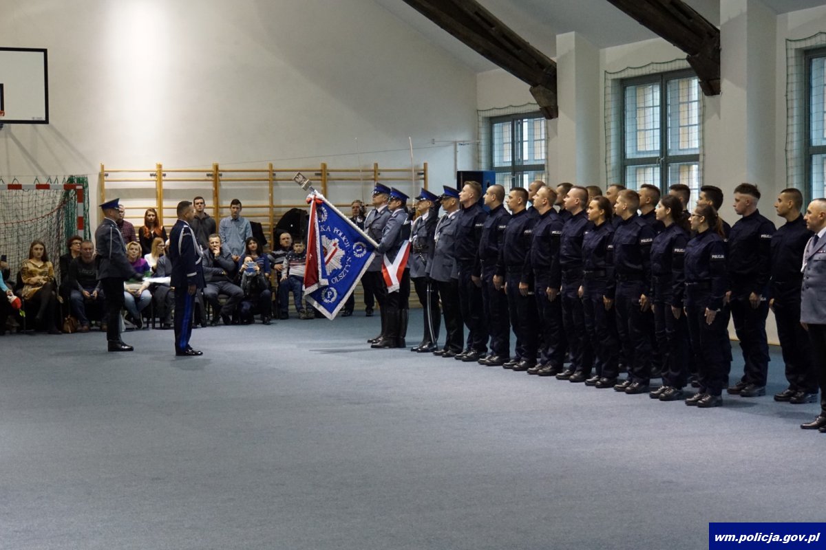 Ślubowanie to najważniejsza chwila w życiu zawodowym każdego policjanta. To chwila, z którą nowi policjanci stają się pełnoprawnymi członkami naszej formacji. 13 lisopada w Olsztynie słowa roty ślubowania wypowiedziało osiemnastu nowych funkcjonariuszy, którzy po ukończeniu szkolenia podstawowego rozpoczną służbę w jednostkach organizacyjnych warmińsko-mazurskiej policji. Nowi policjanci zasilą szeregi Komendy Miejskiej Policji w Olsztynie, Komendy Miejskiej Policji w Elblągu, Komend Powiatowych Policji w: Ełku, Giżycku, Gołdapi, Iławie, Ostródzie, Piszu a także dołączą do Oddziału Prewencji Policji w Olsztynie.