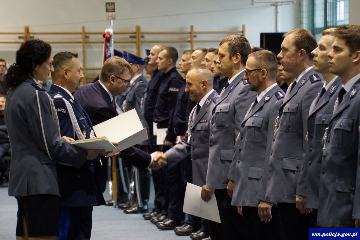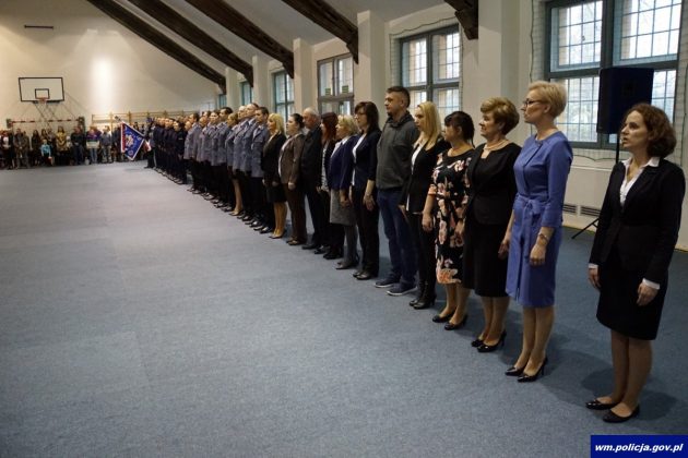 W uroczystości udział wzięli: Pan Artur Chojecki – Wojewoda Warmińsko-Mazurski, Pani Sylwia Jaskólska – Członek Zarządu Województwa Warmińsko-Mazurskiego, Pan Mieczysław Wójcik – Dyrektor Wydziału Zarządzania Kryzysowego i Ochrony Ludności, pan Sławomir Koniuszy – Przewodniczący Warmińsko-Mazurskiego Zarządu Wojewódzkiego NSZZ Policjantów, Panowie Komendanci Miejscy i Powiatowi Policji garnizonu warmińsko- mazurskiego, Dowódca Oddziału Prewencji Policji oraz naczelnicy Wydziałów Komendy Wojewódzkiej Policji w Olsztynie. Nie zabrakło także rodzin i przyjaciół ślubujących funkcjonariuszy.