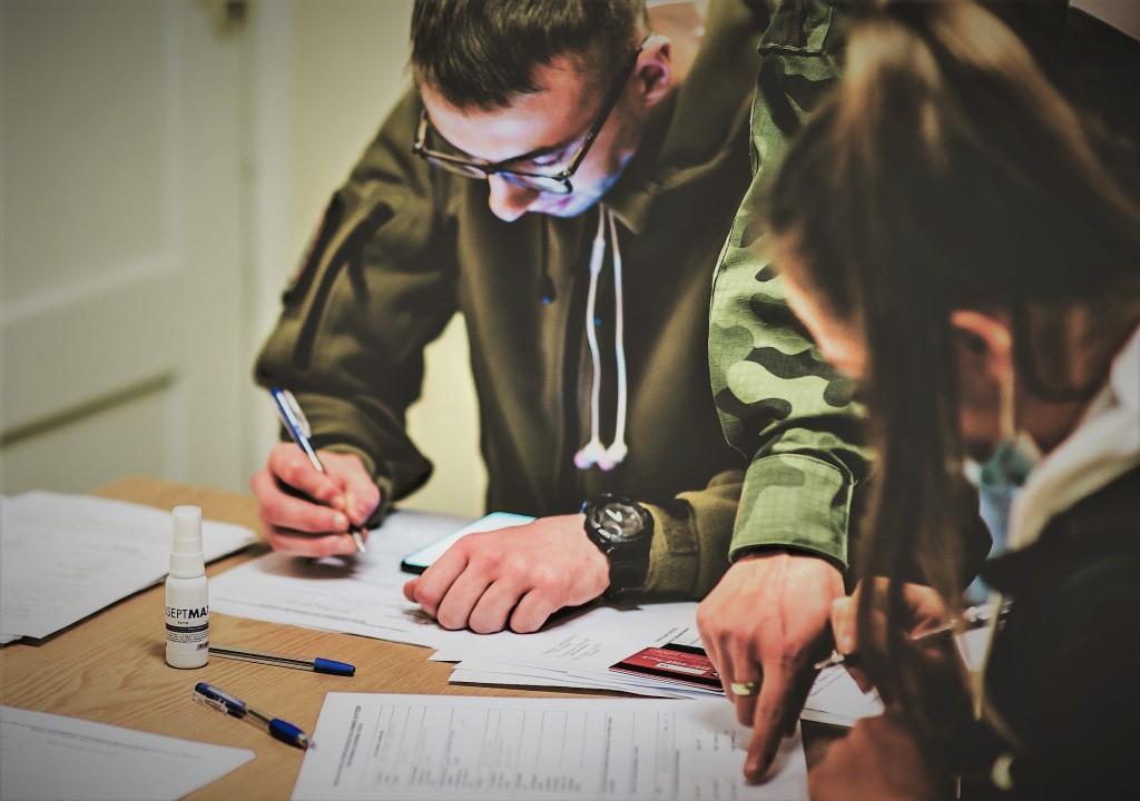 Nowo powołani żołnierze swój pierwszy dzień w służbie rozpoczęli od wypełnienia ankiety czyli tzw. wywiadu na temat stanu ich zdrowia oraz dotychczasowej aktywności.