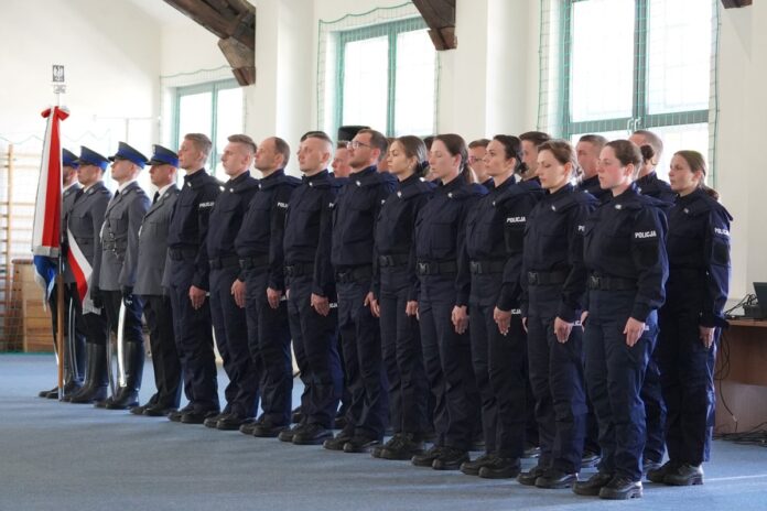 W środę (10 maja) grupa 19 nowo przyjętych policjantów uroczyście ślubowała „służyć wiernie Narodowi, chronić ustanowiony Konstytucją Rzeczypospolitej Polskiej porządek prawny, strzec bezpieczeństwa Państwa i jego obywateli, nawet z narażeniem życia…”. Te słowa roty ślubowania nowi policjanci powtórzyli za swoim szefem nadinsp. Tomaszem Klimkiem Komendantem Wojewódzkim Policji w Olsztynie.