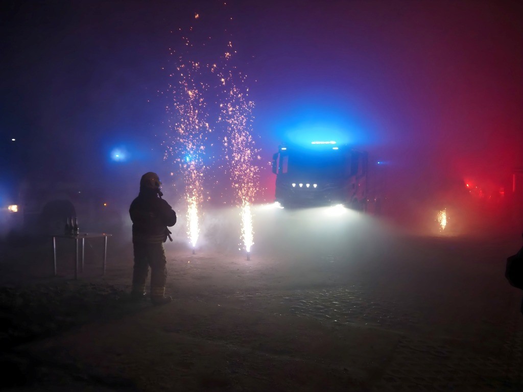 Uroczystość powitania nowego wozu miała wyjątkowy charakter. Pojazd wjechał do remizy w asyście rac i fajerwerków, a zgodnie z tradycją został symbolicznie oblany szampanem. W wydarzeniu licznie uczestniczyli mieszkańcy, w tym całe rodziny z dziećmi, które mogły z bliska obejrzeć nowy samochód, zapoznać się z jego wyposażeniem, a nawet zasiąść w kabinie.