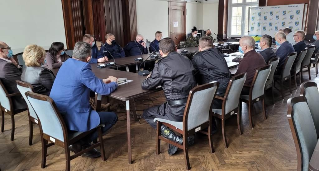 Ppłk Książak rozmawiał z Komendantem Powiatowej Straży Pożarnej, z zastępcą Komendanta Powiatowej Policji, a także przedstawicielami komórek zarządzania kryzysowego w gminach. W rozmowach uczestniczyła ppor. Emilia Minda, inicjatorka wielu działań i szkoleń realizowanych w Ełku.