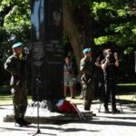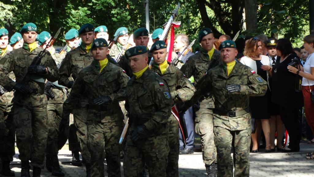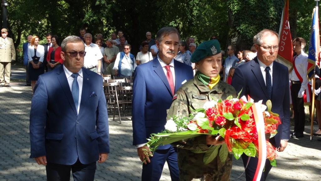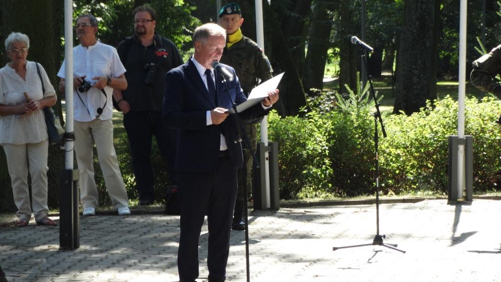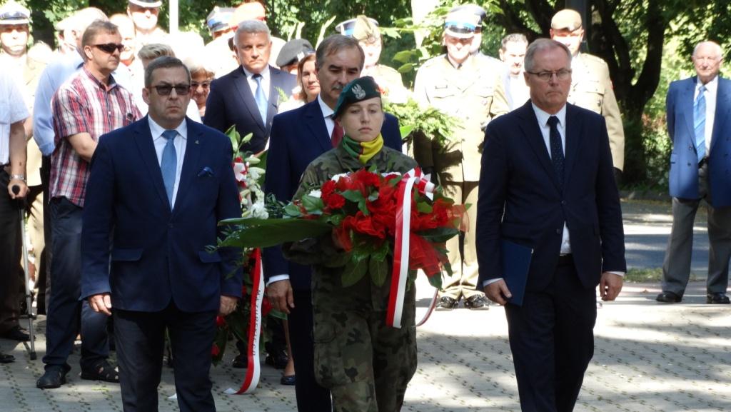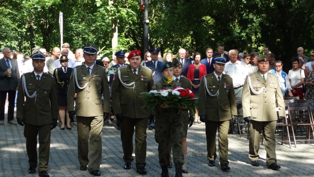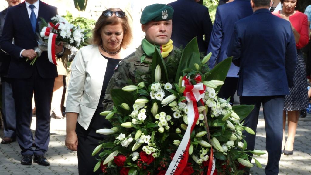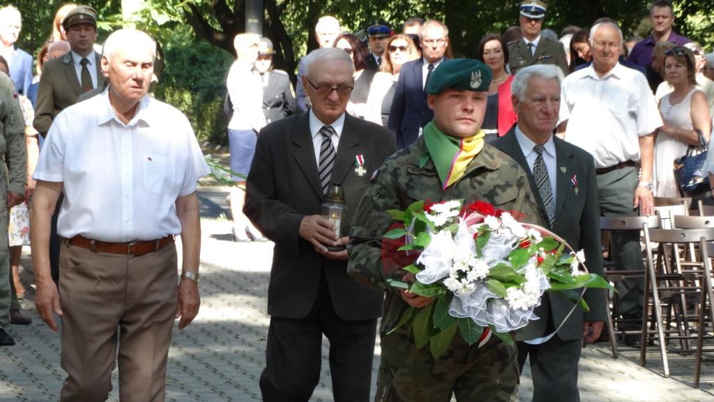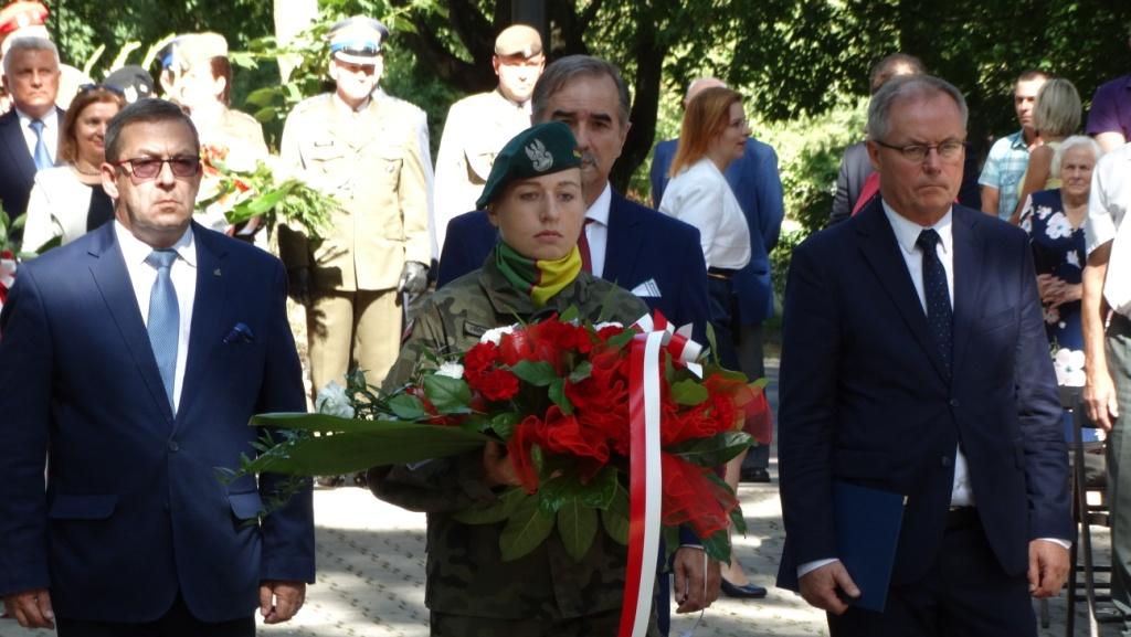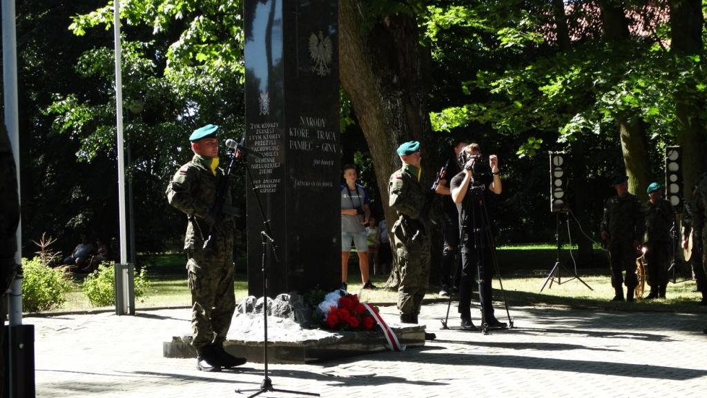 Następnie uczestnicy przemaszerowali pod pomnik w parku Rogera Goemaere’a przy ul. Moniuszki. Po odśpiewaniu hymnu, okolicznościowych przemówieniach, złożono kwiaty i wieńce pod pomnikiem Żołnierzy AK i Zesłańców Sybiru.