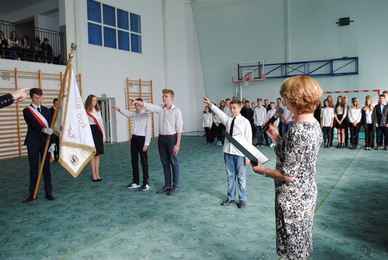 Pierwszoklasiści dziś oficjalnie stali się „Jedynkowiczami” składając słowa przysięgi w obecności wszystkich zgromadzonych i pocztu sztandarowego. Po oficjalnej części klasa 3b zadbała o artystyczną i śmieszną część akademii.
