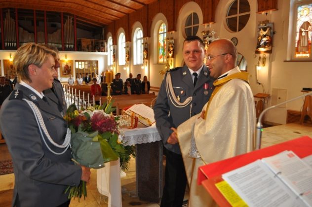 Tegoroczne obchody Święta Policji rozpoczęły się o godzinie 9:00 Mszą Świętą w kościele pw. Ducha Świętego Pocieszyciela w Giżycku. Mszę świętą w intencji policjantów, pracowników Policji i ich rodzin odprawił Ksiądz Konrad Sęk, który od ponad dwóch lat jest Duszpasterzem w giżyckiej komendzie i wspiera funkcjonariuszy w ich codziennej służbie jak i w dniach dla nich ważnych i uroczystych takich jak Święto Policji. Msza Święta była dla zebranych wyjątkowa, ponieważ Ksiądz Konrad Sęk kończy posługę w giżyckim kościele i rozstaje się tym samym z giżyckimi policjantami. Po mszy św. Komendant Powiatowy Policji w Giżycku mł. insp. Przemysław Rawa oraz I Zastępca Komendanta Powiatowego Policji w Giżycku kom. Sławomir Ozygała podziękowali księdzu za opiekę duchową nad funkcjonariuszami i pracownikami Komendy Powiatowej Policji w Giżycku.