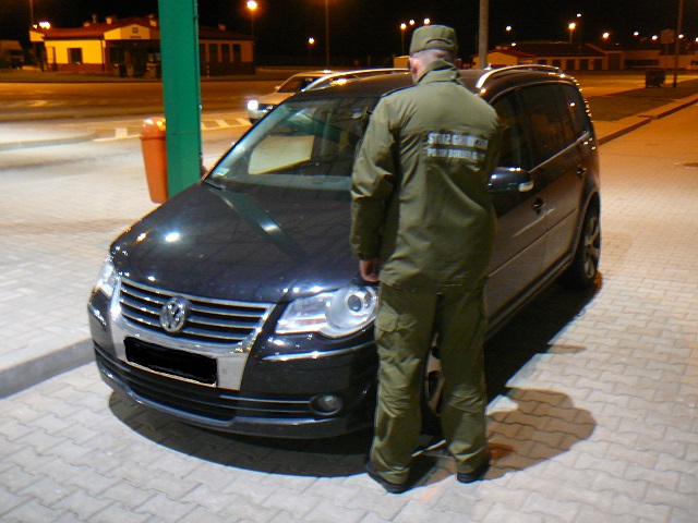 W drugim przypadku obywatel Polski zamierzał przekroczyć granicę jako kierowca osobowego Volkswagena Touran. Funkcjonariusz sprawdził dokumenty podróży i skrupulatnie zbadał legalność pochodzenia pojazdu. Kontrola wykazała, że tabliczka znamionowa jest prawdopodobnie podrobiona, a z pojazdu usunięto dodatkowe zabezpieczenia stosowane przez producenta. Według numeru VIN ustalono również, że pojazd powinien być koloru czarnego, natomiast jest koloru granatowego. Wartość samochodu (rok produkcji 2008) szacuje się na 30 000 zł.