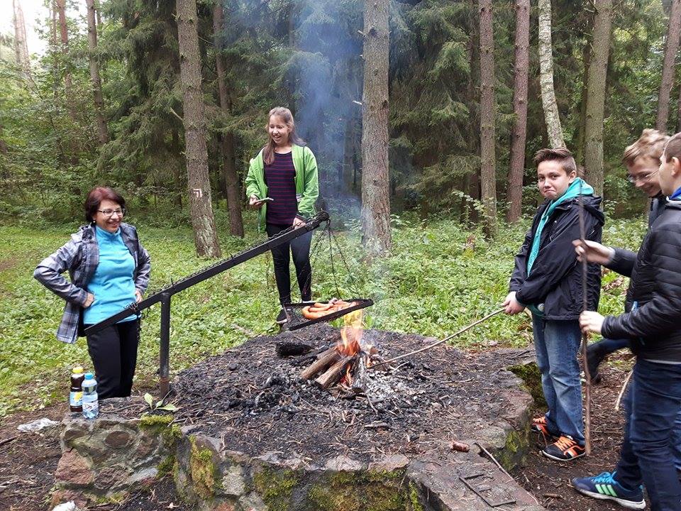 Dnia 23 września klasa 1a o 8.25 wyruszyła na klasowe ognisko integracyjne w lesie w Wilkasach. Po dojściu na miejsce rozpaliliśmy ogień, część z nas piekła kiełbaski na kijkach, inni na kratce grillowej. Po zjedzeniu wszystkiego co przygotowaliśmy, poszliśmy do lasu na podchody. Pani Ania podzieliła nas na dwie grupy szukającą i chowającą się. Dobrze się bawiliśmy szukając drugiej grupy po zostawionych wskazówkach. Po dobrej zabawie wróciliśmy do szkoły.