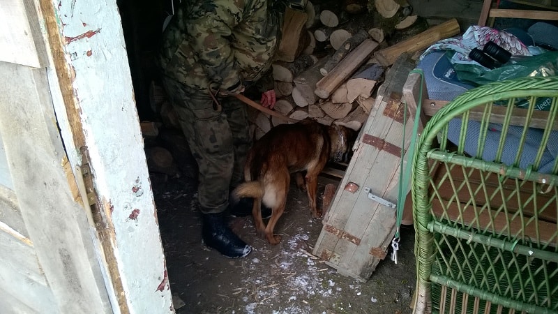 W trakcie dalszych czynności funkcjonariusze SG wraz z czworonożnym podopiecznym oraz funkcjonariuszami Komendy Miejskiej Policji w Olsztynie przeszukali pomieszczenia mieszkalne i gospodarcze mężczyzn.