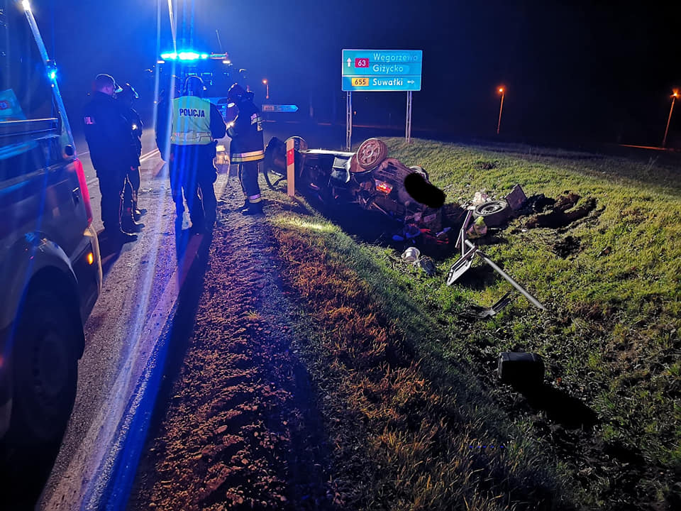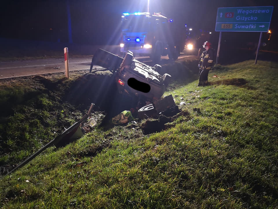 Pijany kierowca dachował autem w miejscowości Kąp. Do zdarzenia doszło w nocy z 5 na 6 listopada około godziny 1.30.
