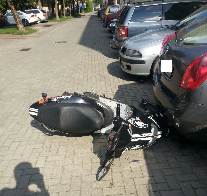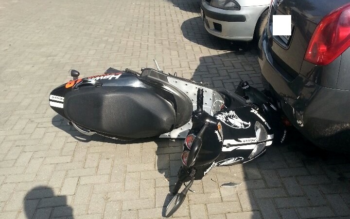 2,4 promila alkoholu w organizmie miał kierowca motoroweru, który wjechał w tył zaparkowanego nissana.