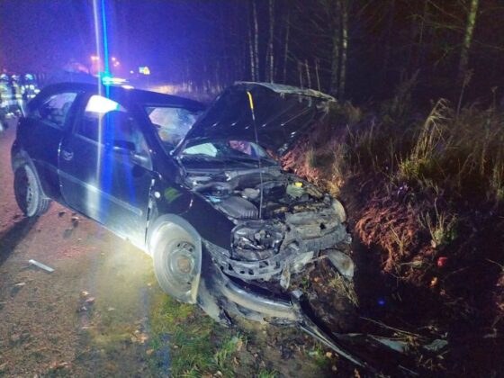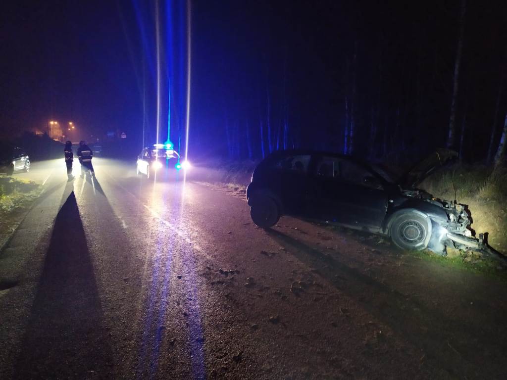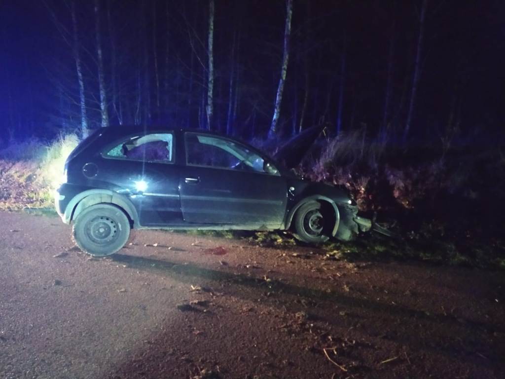 Kierowca podróżował z trzema pasażerami, jeden z nich, który siedział za kierowcą doznał obrażeń głowy, został przewieziony do szpitala. Kierowca tłumaczył, że na drogę wbiegła mu sarna, tylko nie potrafił wytłumaczyć, z której strony jezdni. Ponad okazało się, że 34-latek nie posiada uprawnień do kierowania.