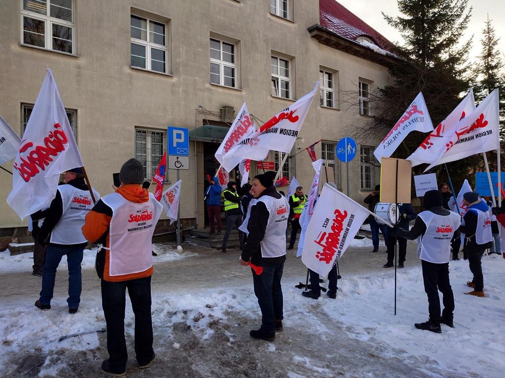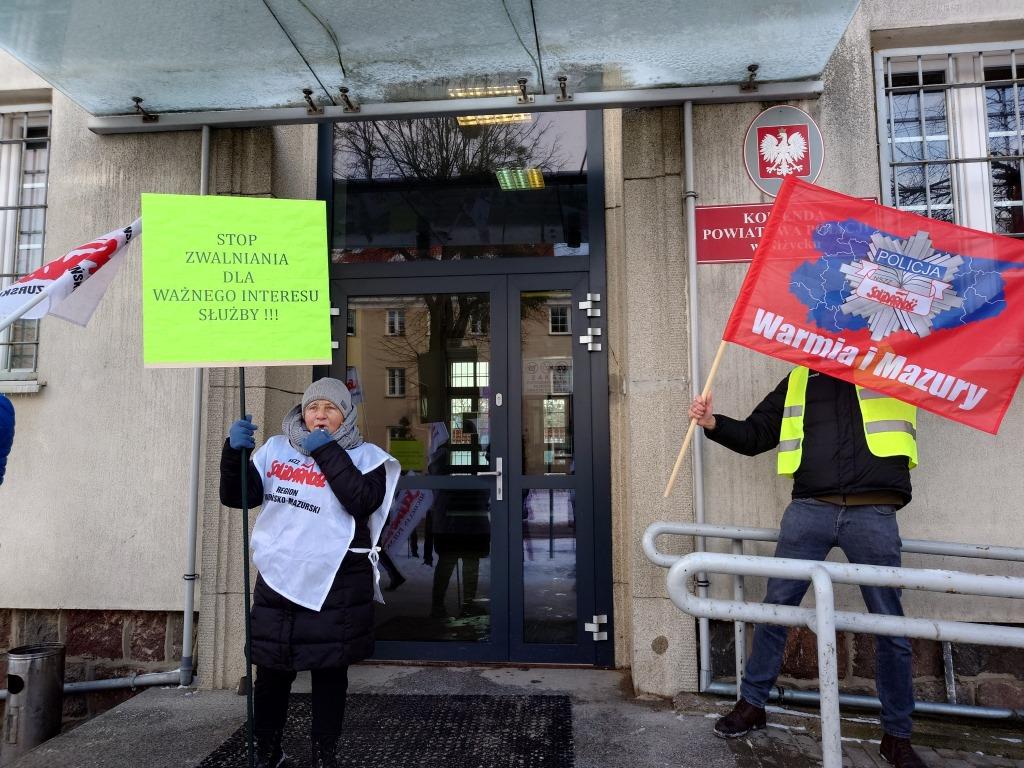 W piątek, 19 stycznia przed Komendą Powiatową Policji w Giżycku odbyła się pikieta zorganizowana przez związkowców policyjnej „Solidarności” z Warmii i Mazur.