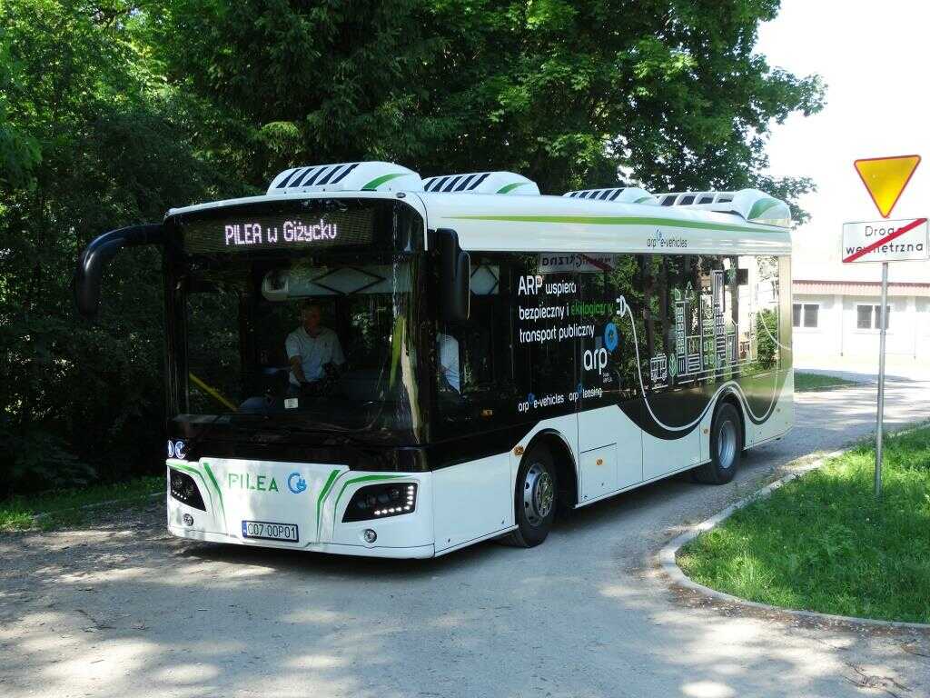 Dzisiaj w Gminnym Zakładzie Komunalnym w Bystrym odbyła się prezentacja elektrycznego autobusu Pilea firmy ARP. Od jutra, przez kolejny tydzień Pilea będzie testowana na trasach gminy Giżycko. Autobus będzie przewoził pasażerów na trasie Bystry-Wilkasy.