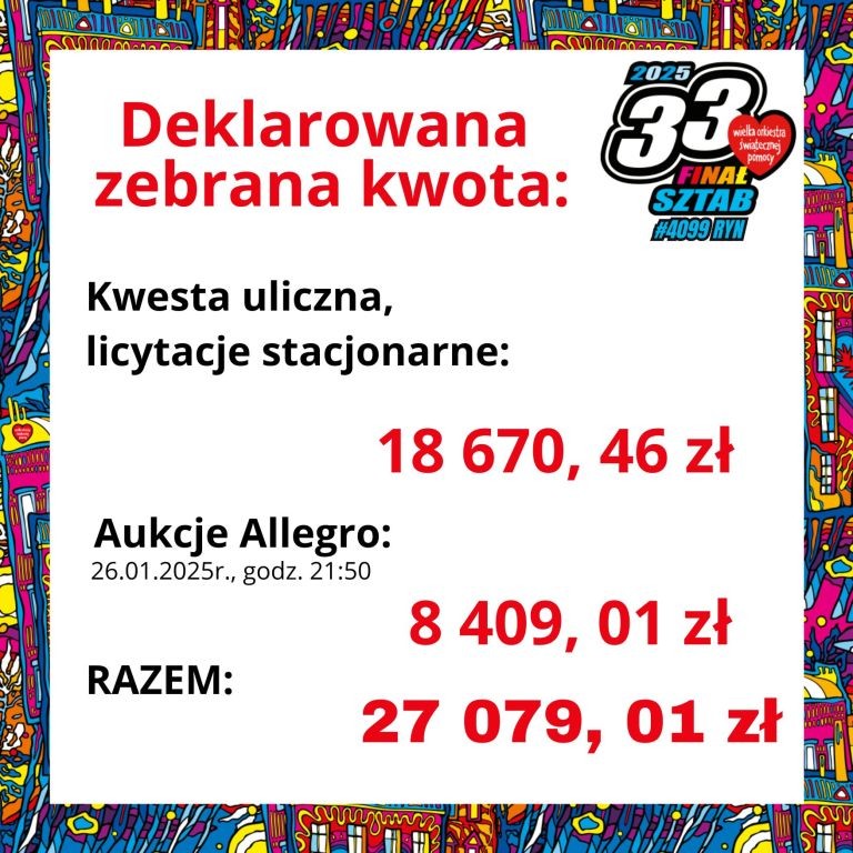 Do 10 lutego trwają aukcje na Allegro: https://allegro.pl/uzytkownik/FicaKotfica . Po 10 lutego poznamy ostateczną zebraną przez ryński sztab kwotę.
