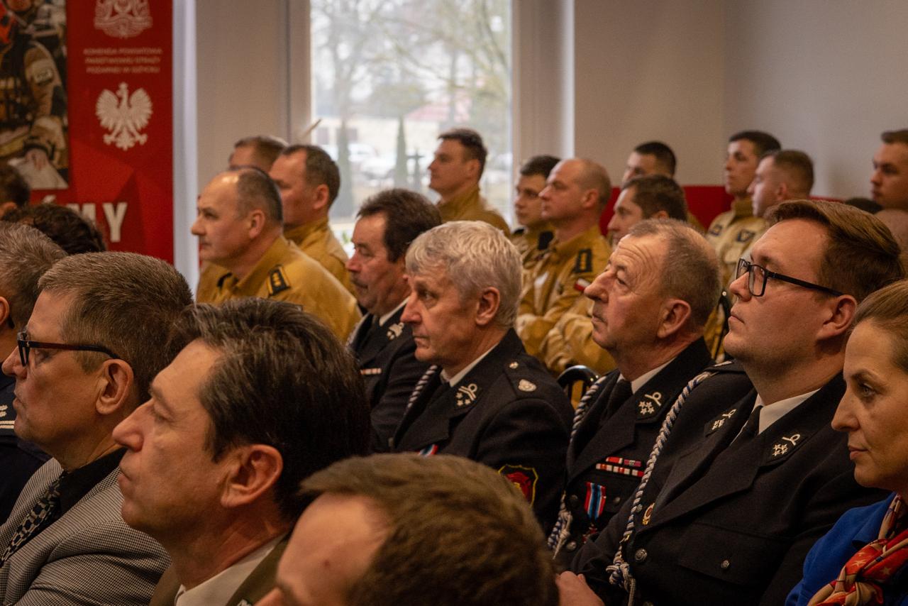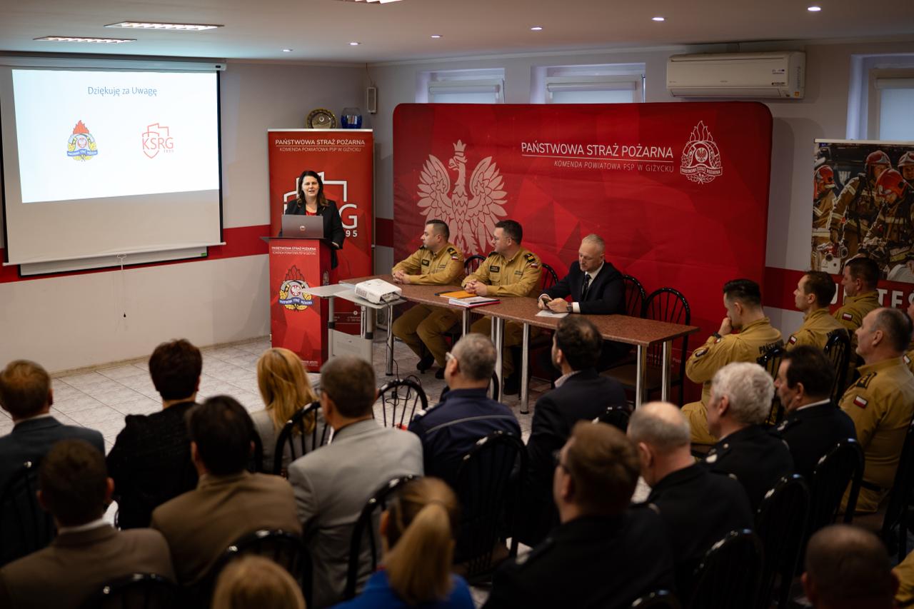 Podczas spotkania złożono również podziękowania za wsparcie finansowe udzielone Komendzie Powiatowej PSP w Giżycku. Szczególne wyróżnienia otrzymali Pani Ewa Cichocka, Prezes Zarządu Mazurskiego Banku Spółdzielczego, oraz Nadleśniczy Nadleśnictwa Giżycko.