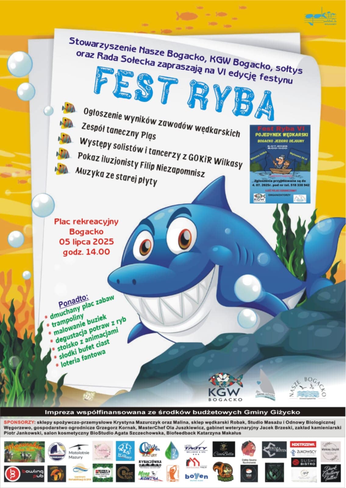O godzinie 14:00 na placu rekreacyjnym w Bogacku startuje VI edycja festynu „Fest Ryba”. W programie między innymi: