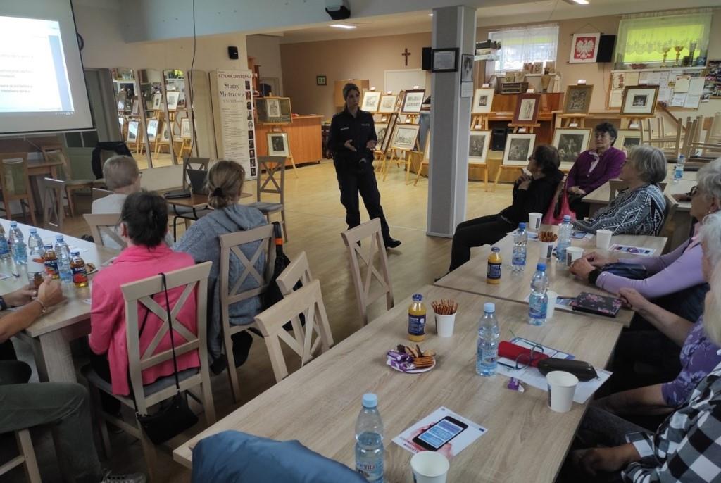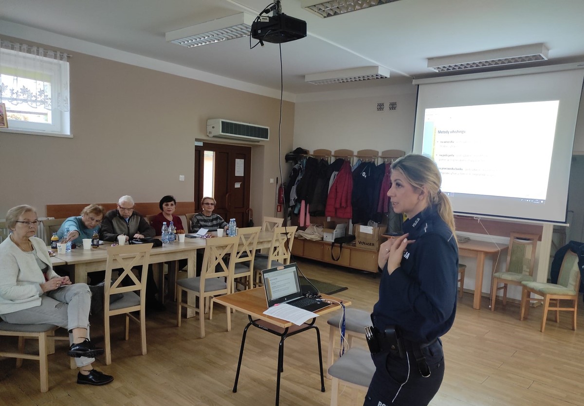 We wtorek (25.10.) dzielnicowa asp. Monika Korzeniowska Jach i funkcjonariuszka zajmująca się profilaktyką społeczną st. asp. Mariola Jagodzińska przeprowadziły spotkanie z seniorami w Klubie Seniora w Giżycku pod hasłem „Fałszywy telefon – zagrożone oszczędności”.