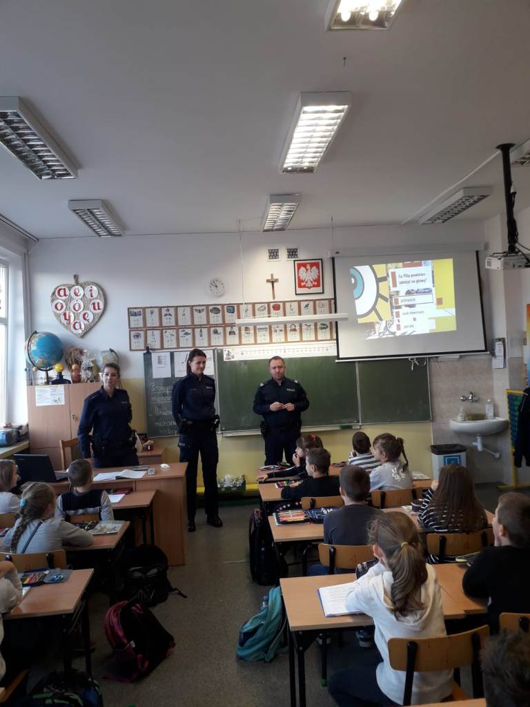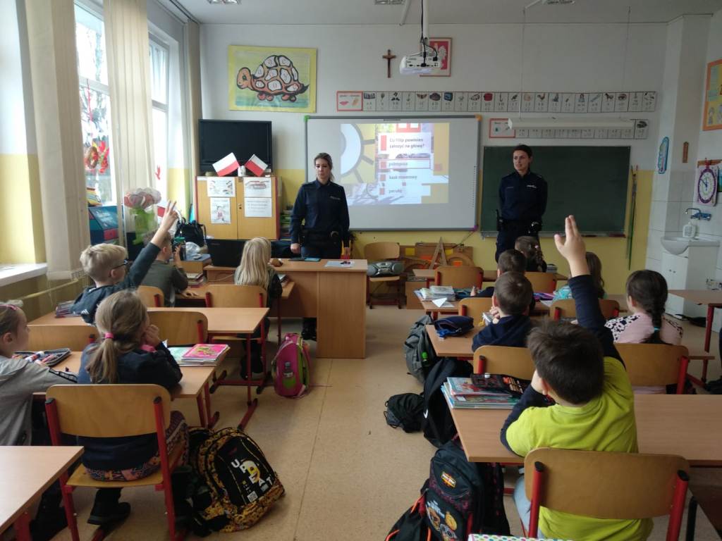 Stróże prawa uświadamiają najmłodszym jak ważne jest to, aby zawsze być widocznym, zwłaszcza poruszając się po drodze oraz w jej pobliżu po zmroku. Policjanci zwracają się również do uczniów z apelem, aby w trakcie jazdy samochodem dbali o swoje bezpieczeństwo i przypominali rodzicom o konieczności używania fotelików i pasów bezpieczeństwa. Uczniowie aktywnie uczestniczą w spotkaniach zadając wiele pytań dotyczących bezpieczeństwa. Wykazują się też dobrą znajomością znaków drogowych i zasad przechodzenia przez ulicę.
